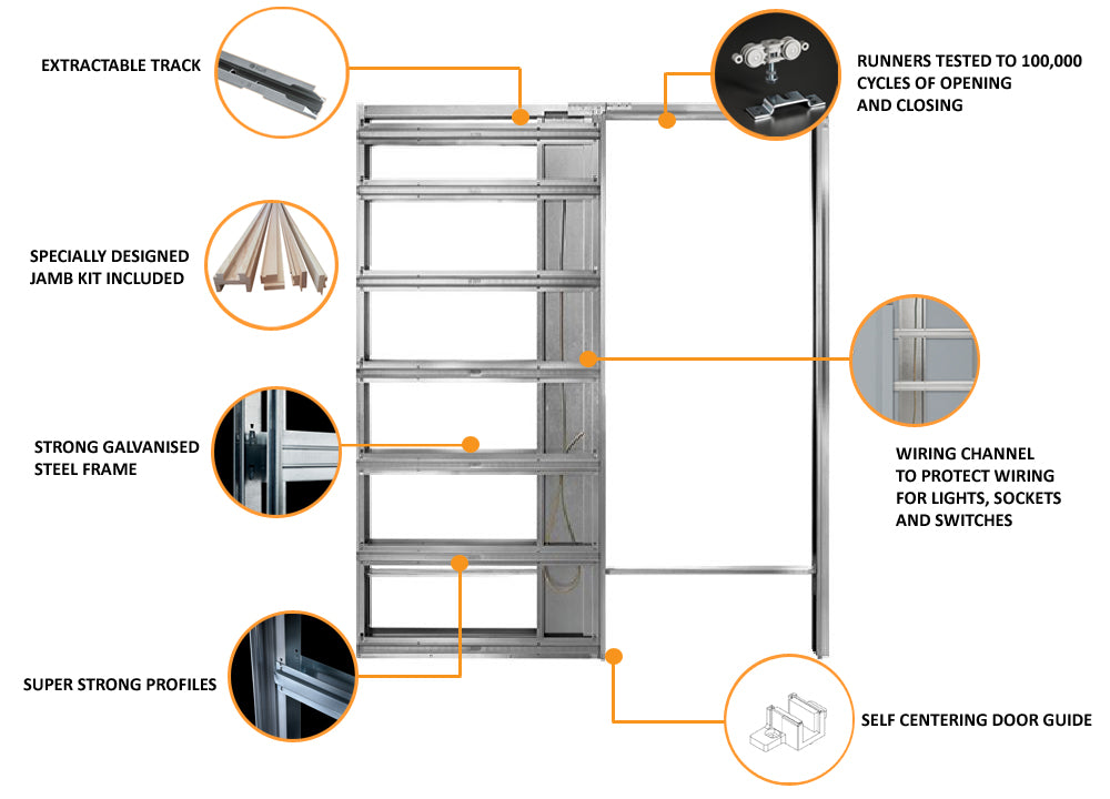 Sliding pocket doors are a perfect space-saving alternative to a traditional hinged door for downstairs toilets, utility rooms, bathrooms, en-suites, storerooms and pantries, walk-in wardrobes, in fact they are ideal for any room where you wish to maximise the usable floor space in a property.