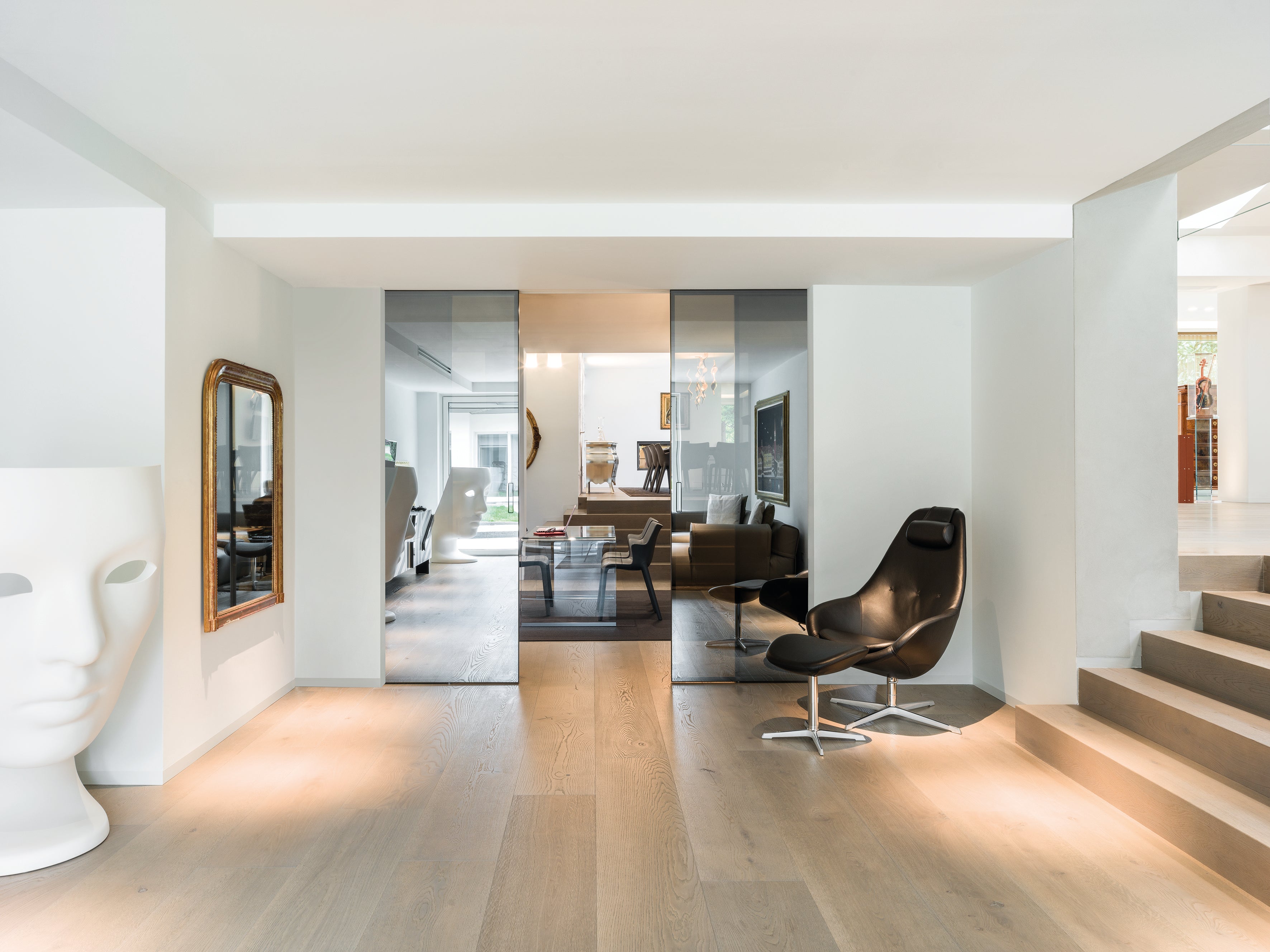 The showroom showcases both the ECLISSE Classic Collection of pocket doors (finished with architrave) and the ECLISSE Syntesis® Flush Collection of architrave free pocket and concealed frame hinged doors. The products on display include: