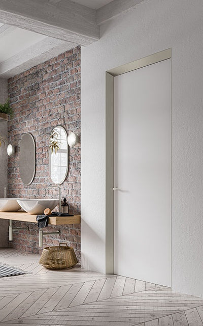 On the other side, the very same frame ensures the perfect planarity of a door flush with the wall that can be finished with paint or wallpaper, just as the surrounding wall. Elegance and discretion.