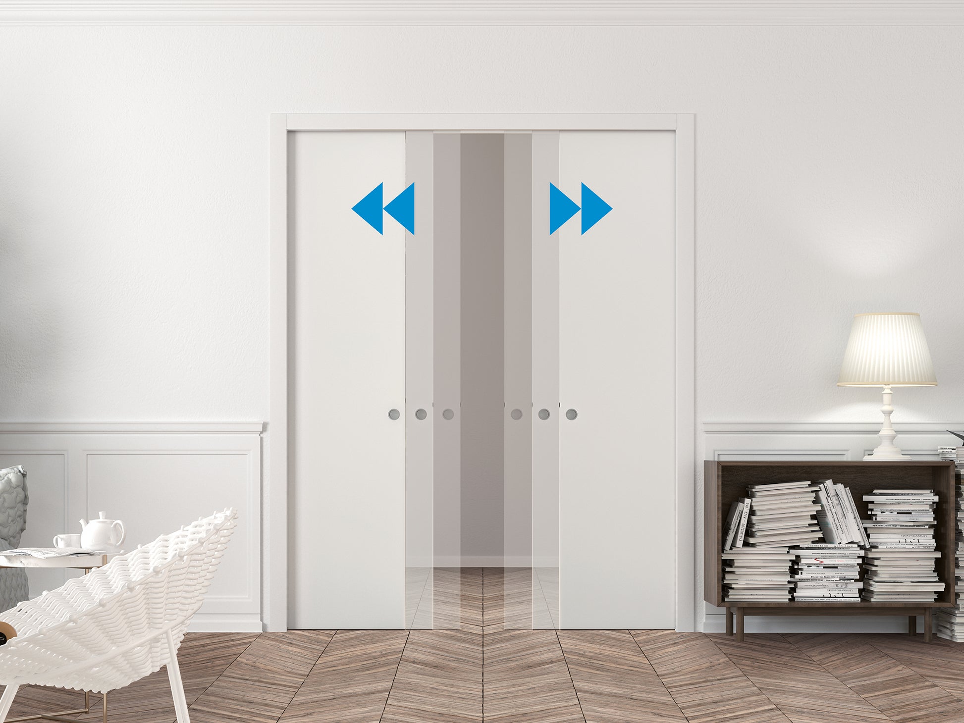 With this system the opening/closing of the two doors in an Eclisse Double System is co-ordinated. Open or close one door, the other opens or closes at the same time.