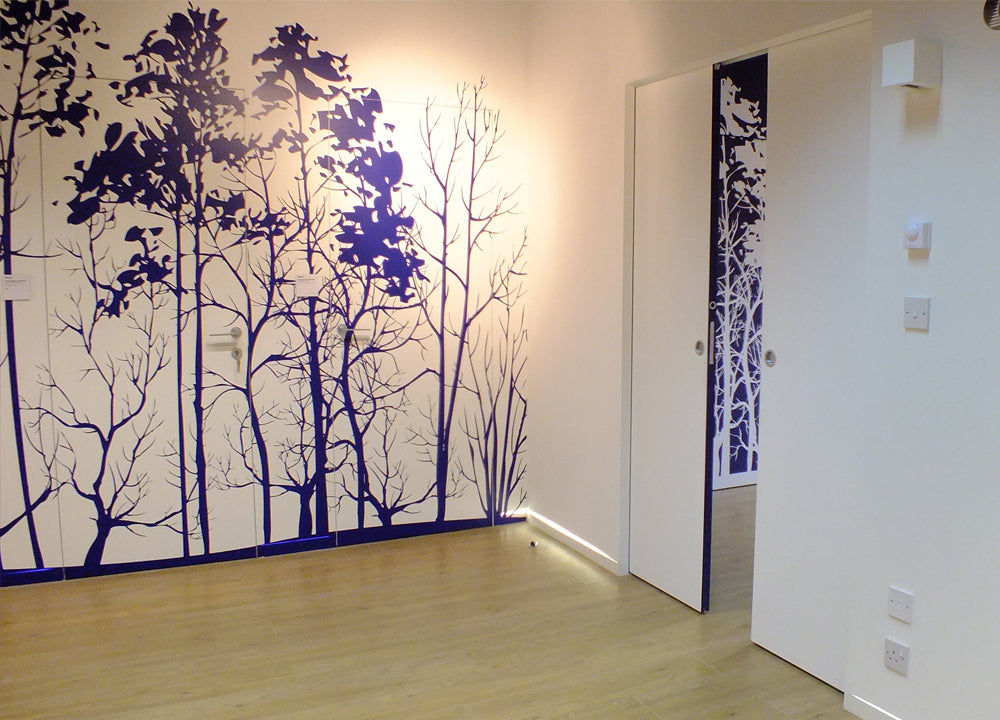 The Syntesis® Flush Pocket Door System Wiring-Ready system has a crisp, flush finish with no jambs or architrave plus the addition of a wiring channel allowing sockets, thermostats, light switches and lights to be fixed on the wall covering the pocket.